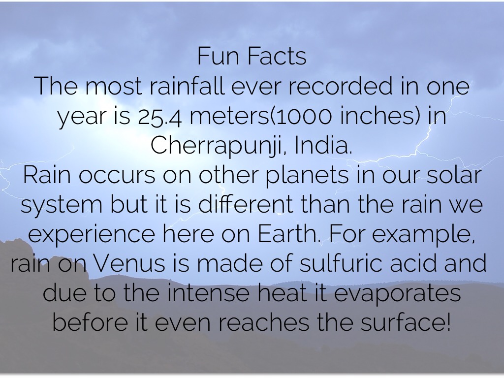 Rain occurs on other planets in our solar system but it is different than the rain we experience here on Earth. For example, rain on Venus is made of sulfuric acid and due to the intense heat it evaporates before it even reaches the surface!