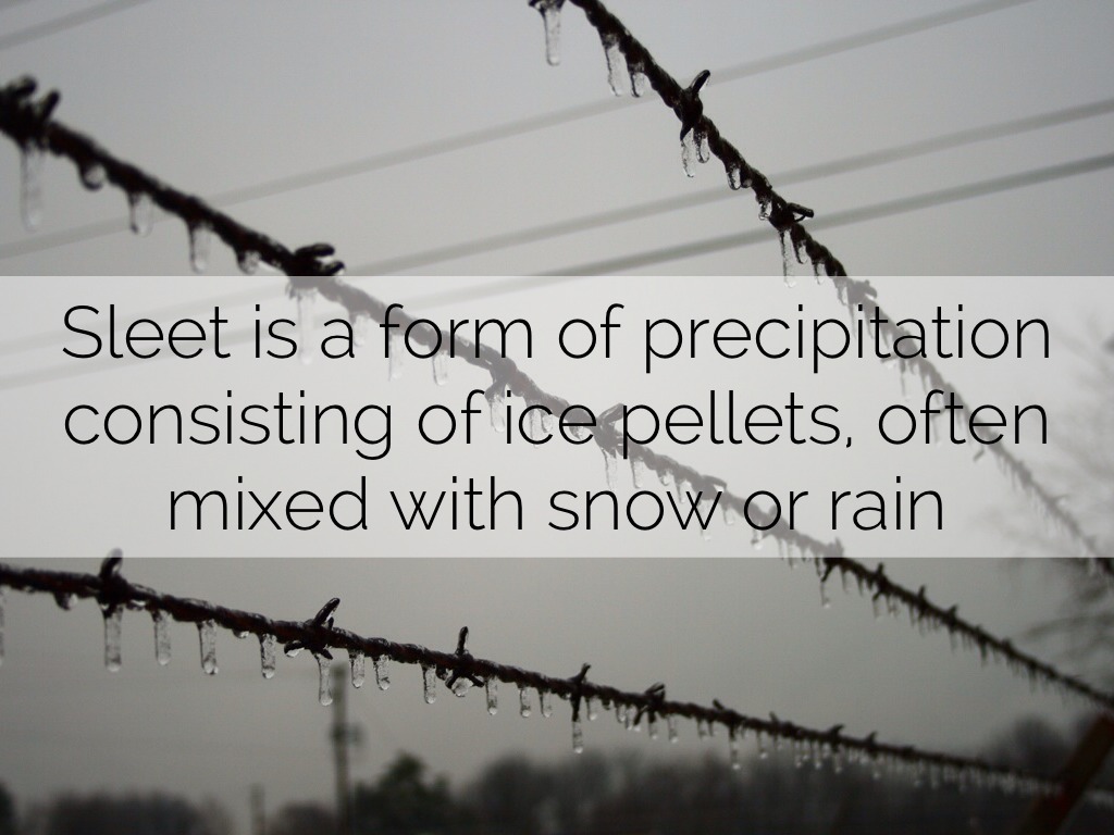 Sleet is a form of precipitation consisting of ice pellets, often mixed with snow or rain