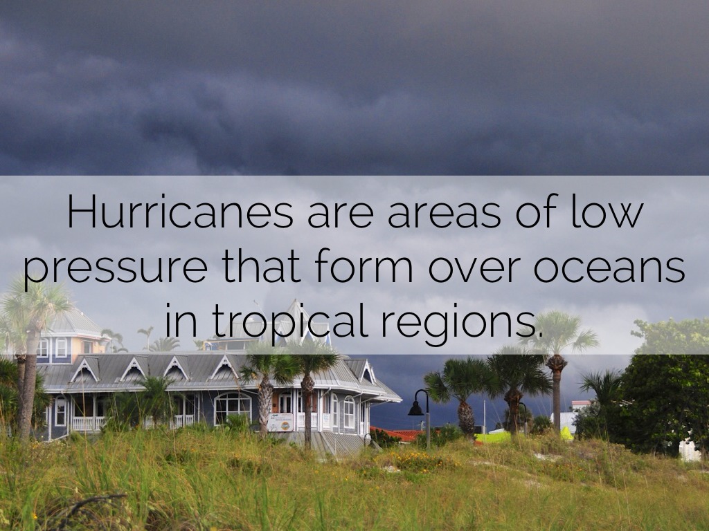 Hurricanes are areas of low pressure that form over oceans in tropical regions.