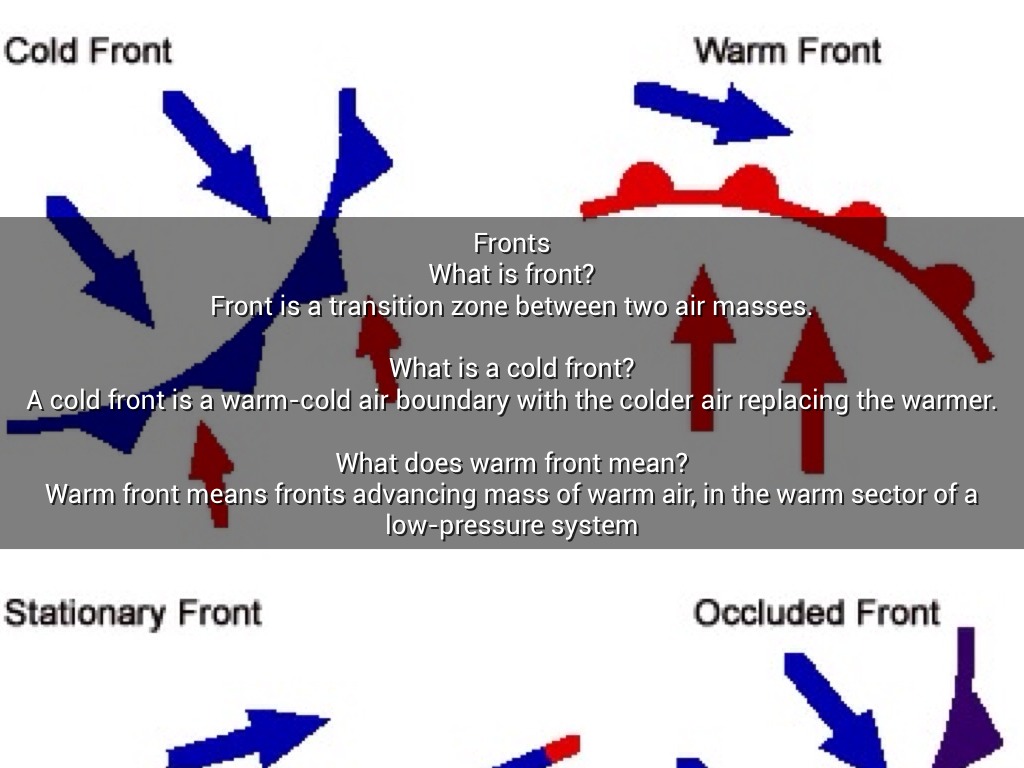 Warm front means fronts advancing mass of warm air, in the warm sector of a low-pressure system