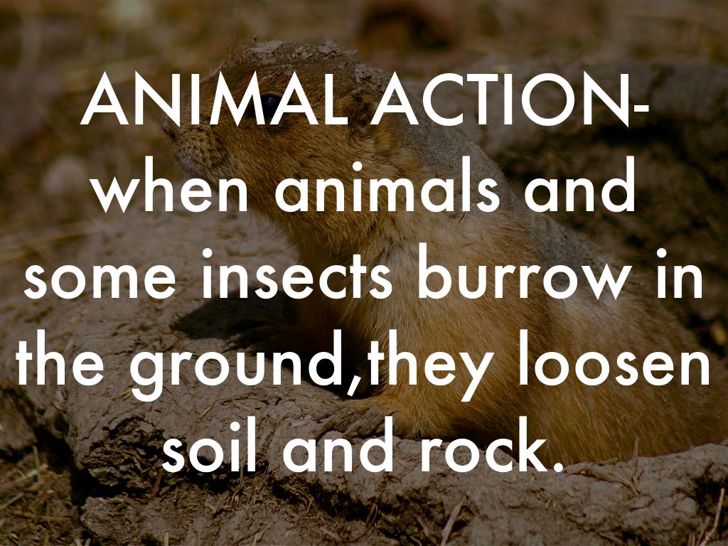 when animals and some insects burrow in the ground,they loosen soil and rock.