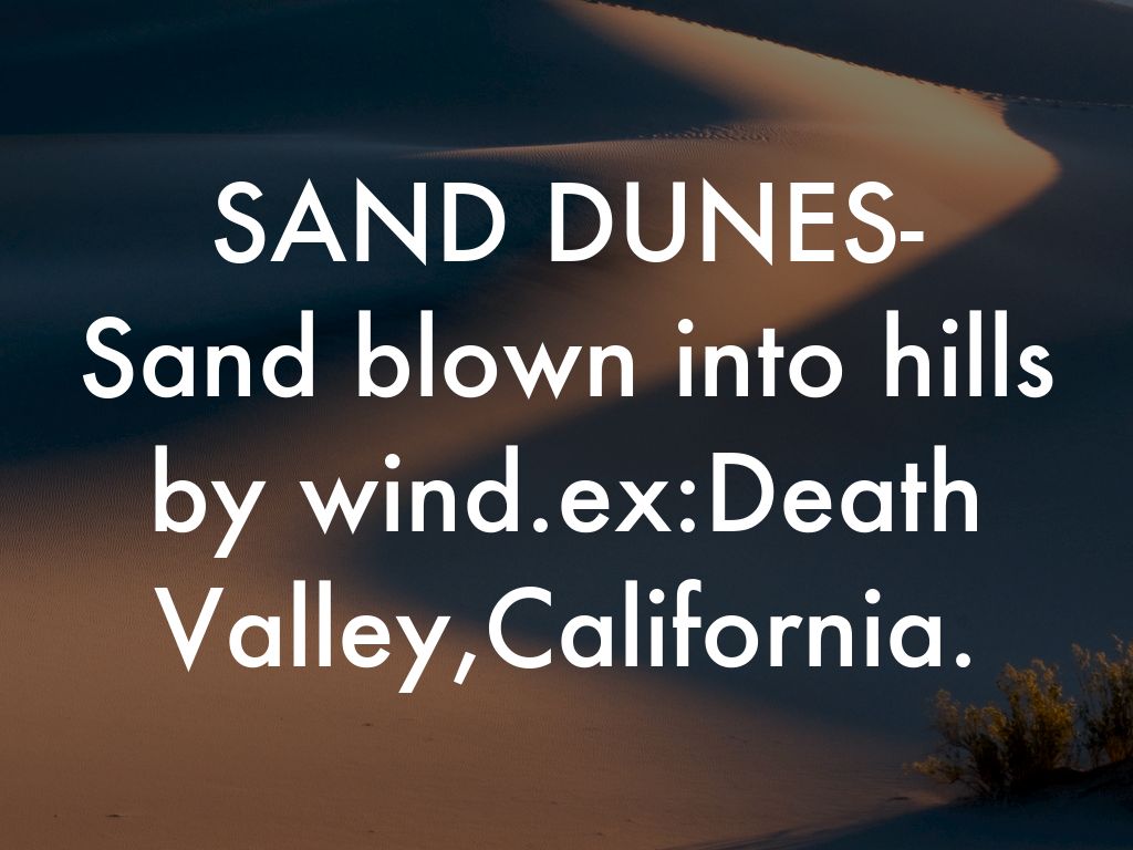 Sediment blown into hills by wind.ex:Great Plains in Texas.