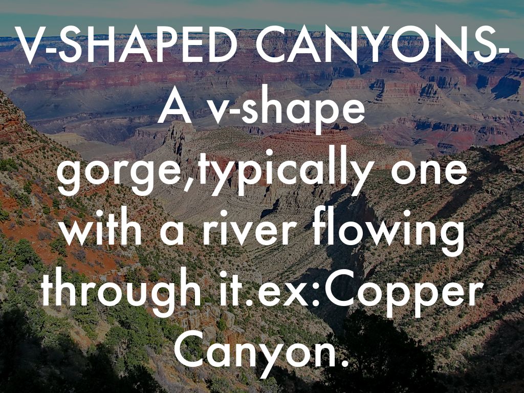 A v-shape gorge,typically one with a river flowing through it.ex:Copper Canyon.