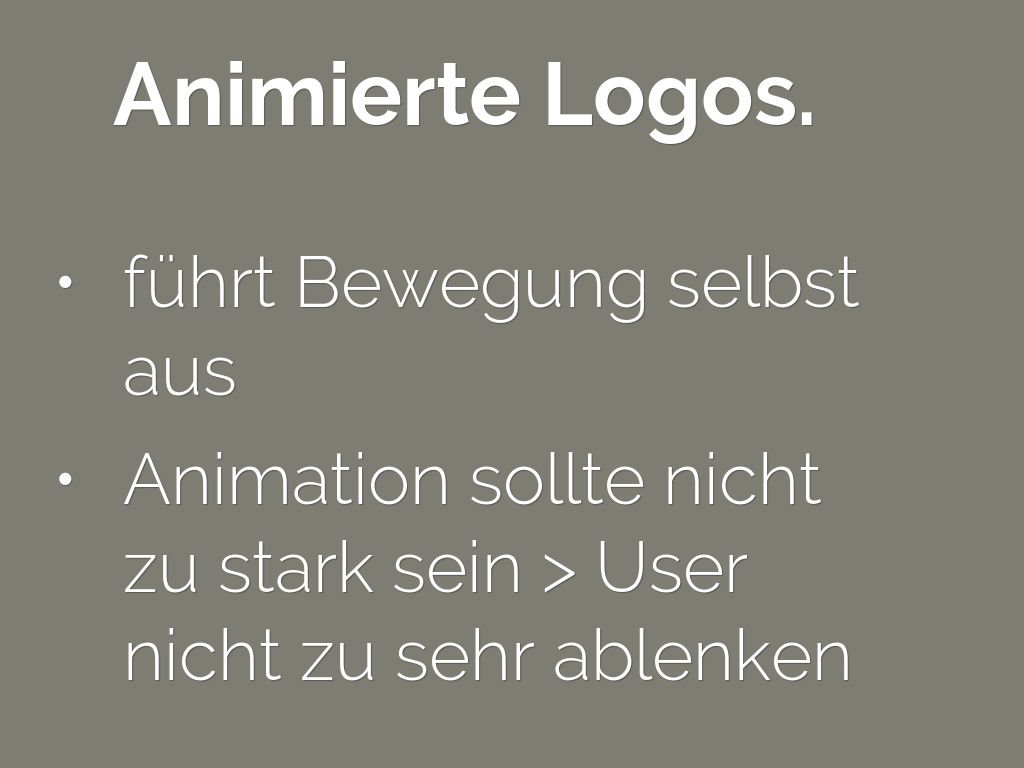 Animation sollte nicht zu stark sein > User nicht zu sehr ablenken