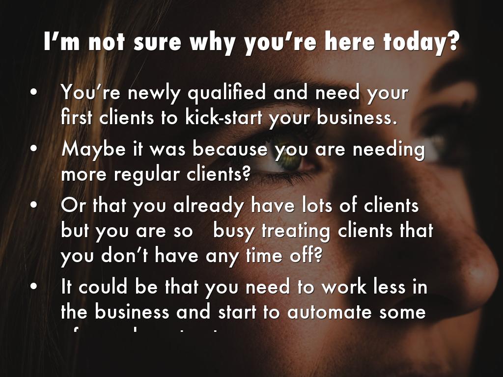 Or that you already have lots of clients but you are so busy treating clients that you don’t have any time off?