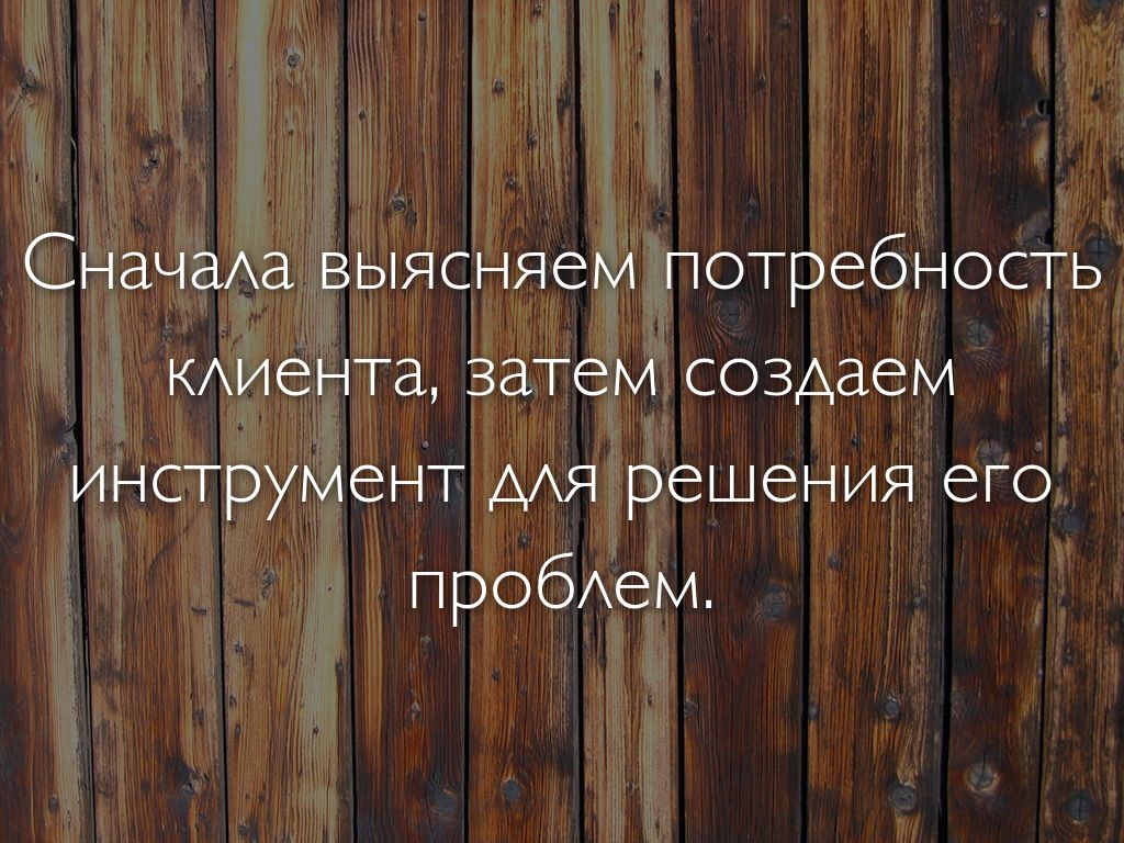Сначала выясняем потребность клиента, затем создаем инструмент для решения его проблем.