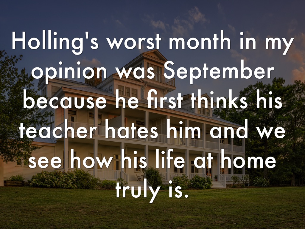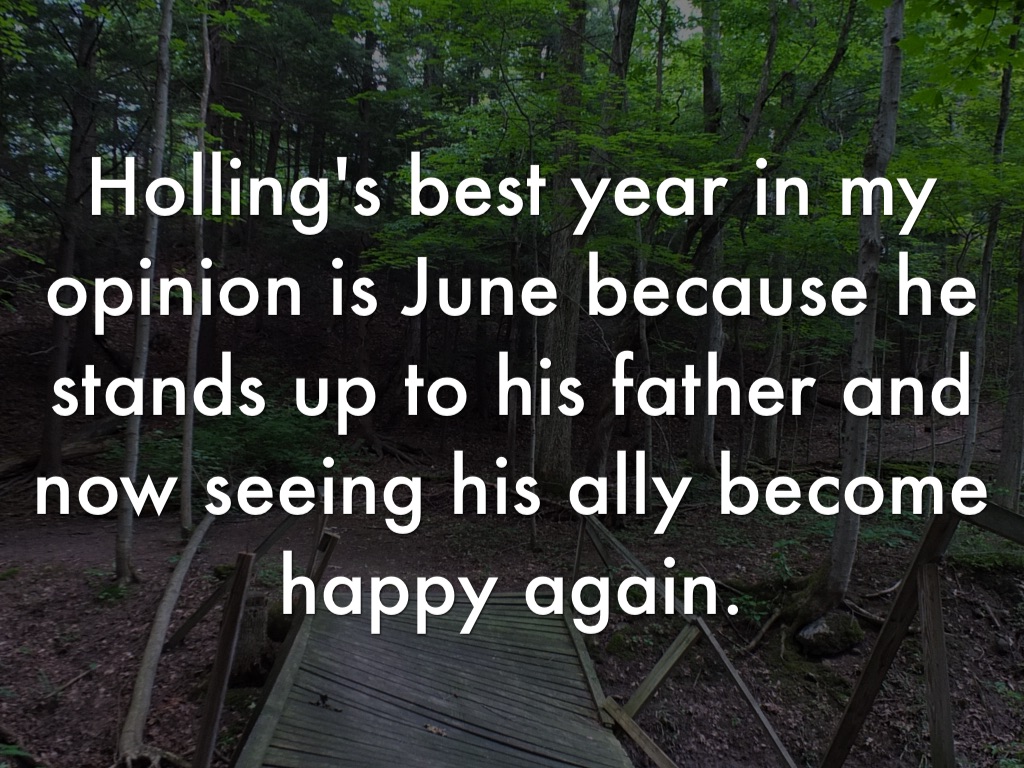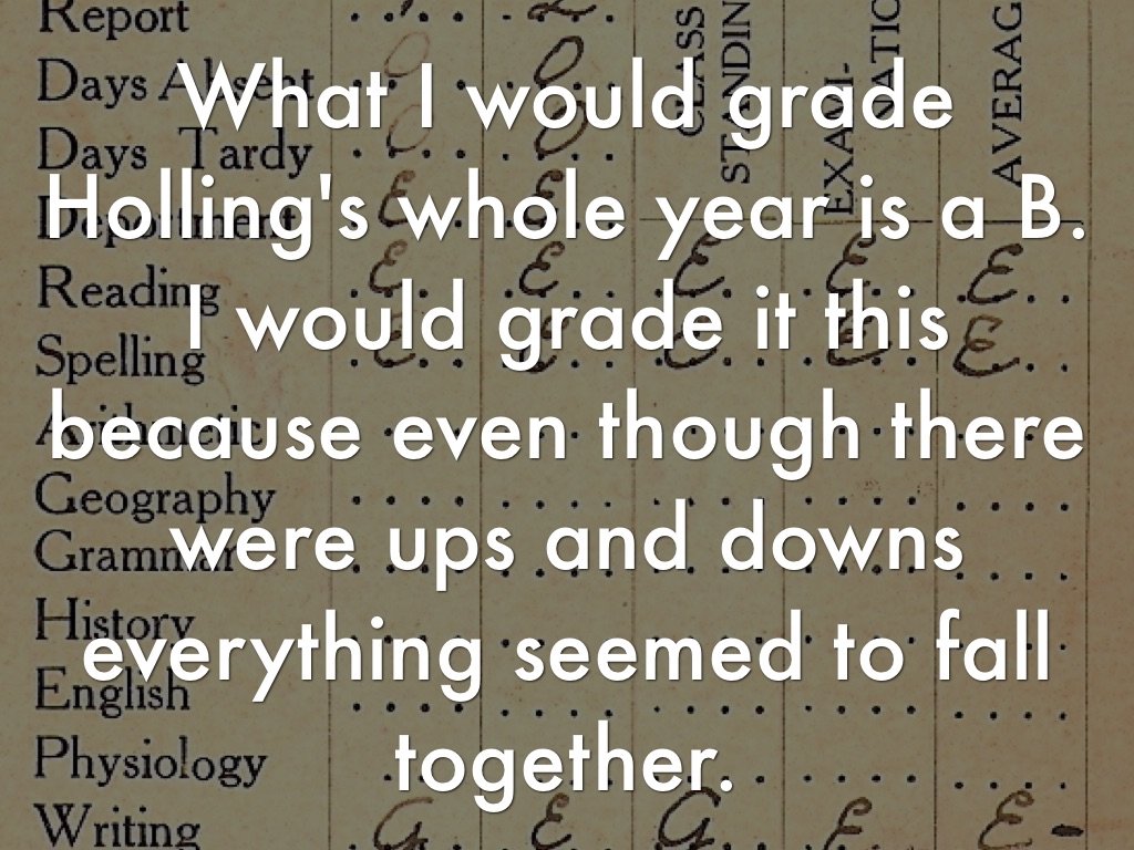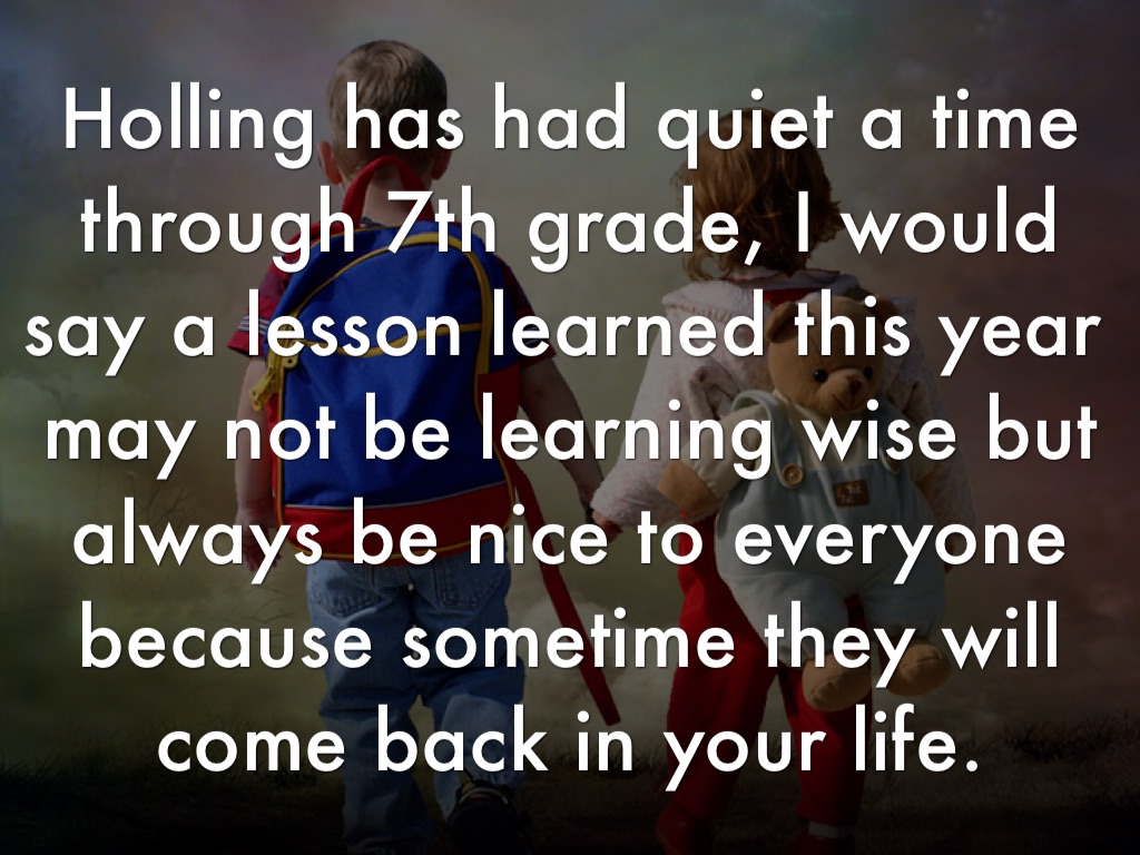 Holling has had quiet a time through 7th grade, I would say a lesson learned this year may not be learning wise but always be nice to everyone because sometime they will come back in your life.