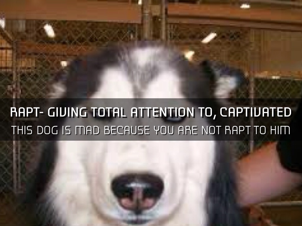 THIS DOG IS MAD BECAUSE YOU ARE NOT RAPT TO HIM