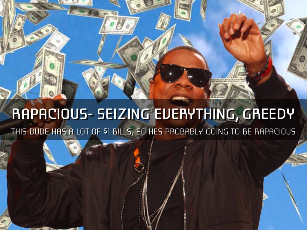 RAPACIOUS- SEIZING EVERYTHING, GREEDY