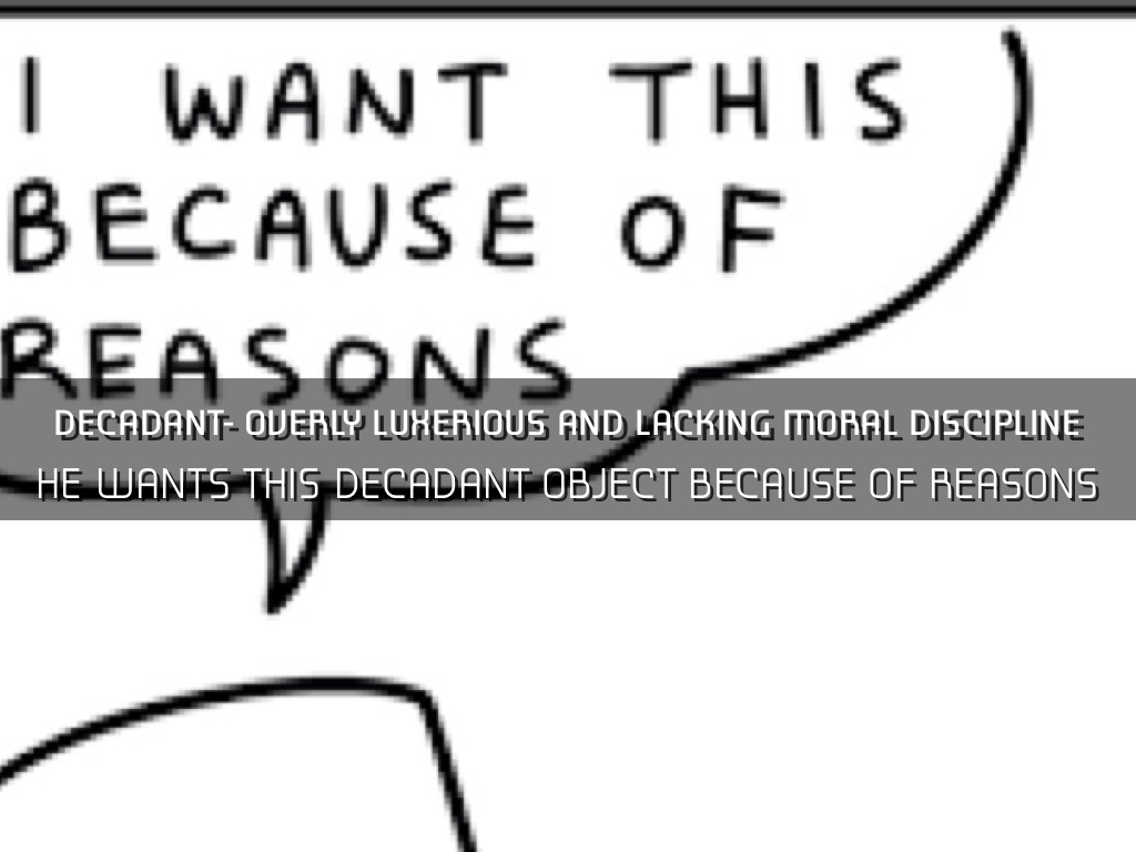 DECADANT- OVERLY LUXERIOUS AND LACKING MORAL DISCIPLINE