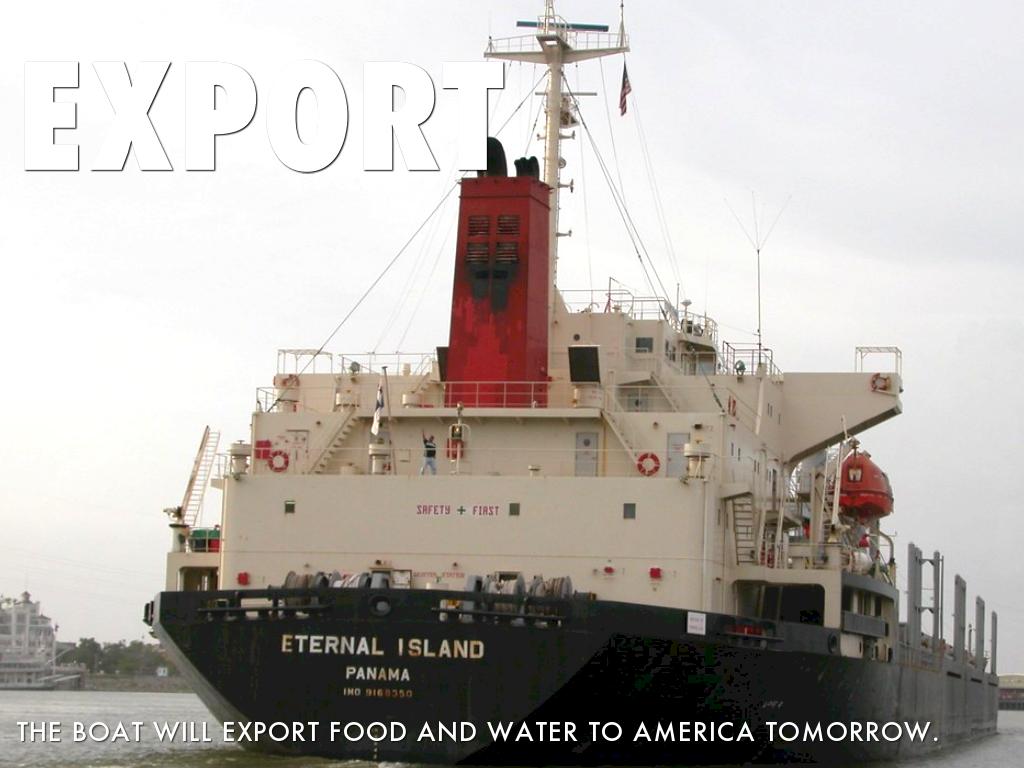 THE BOAT WILL EXPORT FOOD AND WATER TO AMERICA TOMORROW.