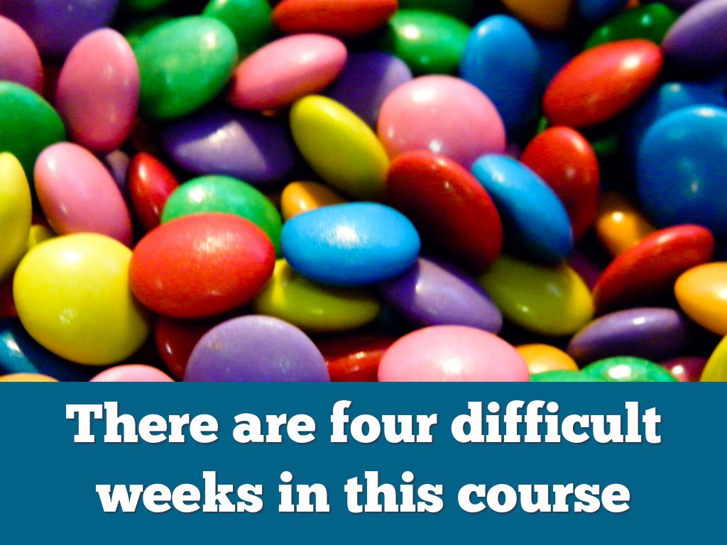 There are four difficult weeks in this course