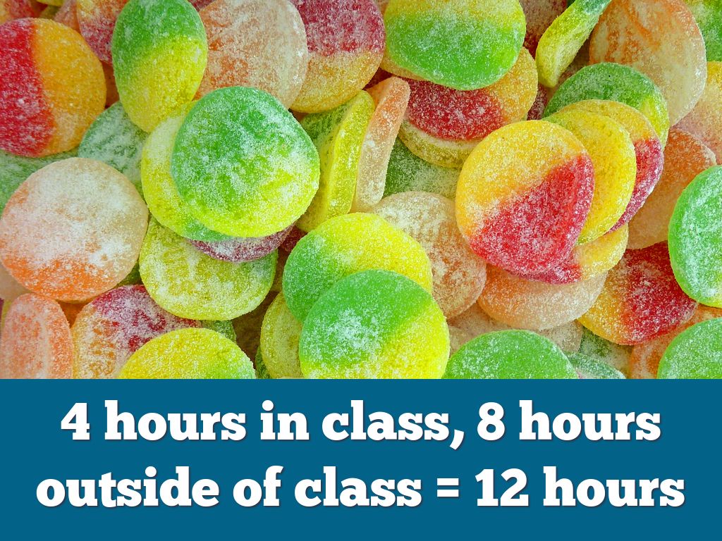 4 hours in class, 8 hours outside of class = 12 hours