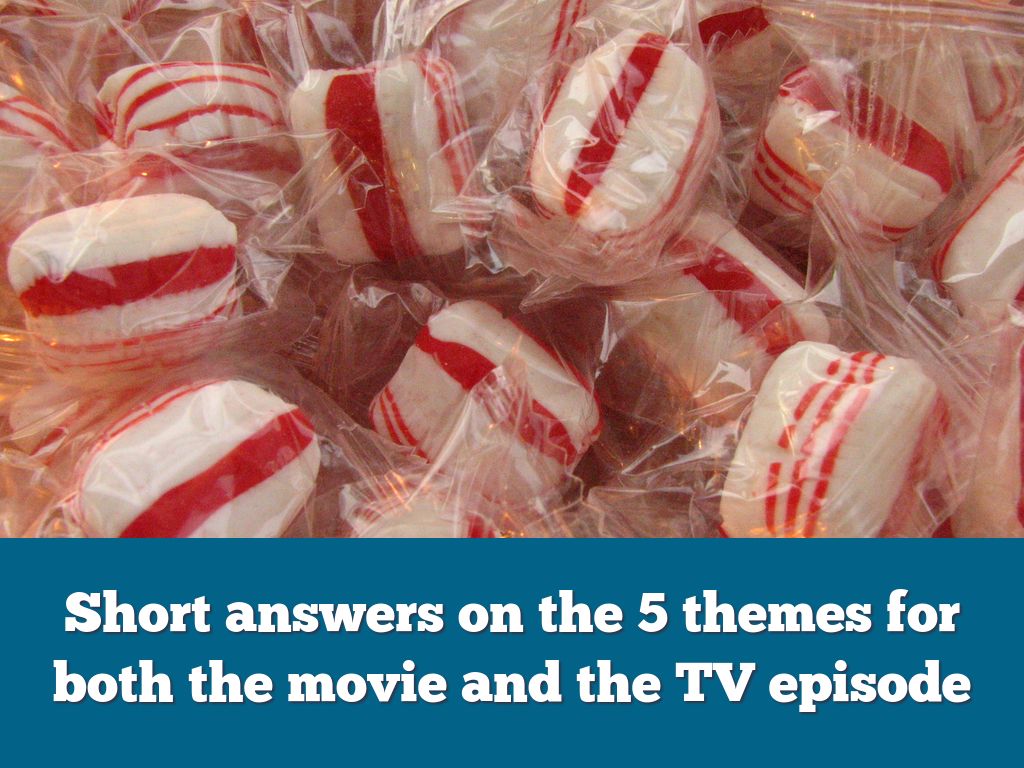 Short answers on the 5 themes for both the movie and the TV episode