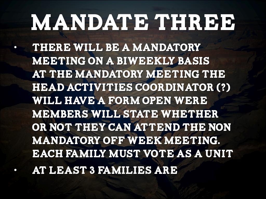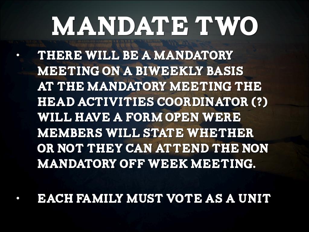At the Mandatory meeting the head Activities Coordinator (?) will have a form open were members will state whether or not they can attend the non mandatory off week meeting.