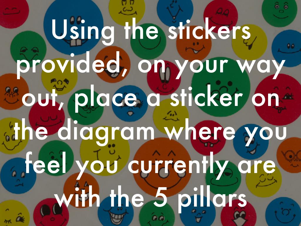 Using the stickers provided, on your way out, place a sticker on the diagram where you feel you currently are with the 5 pillars