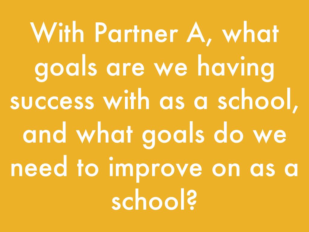 With Partner A, what goals are we having success with as a school, and what goals do we need to improve on as a school?