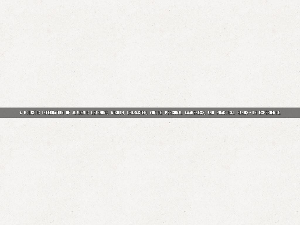 A holistic integration of academic learning, wisdom, character, virtue, personal awareness, and practical hands-on experience.