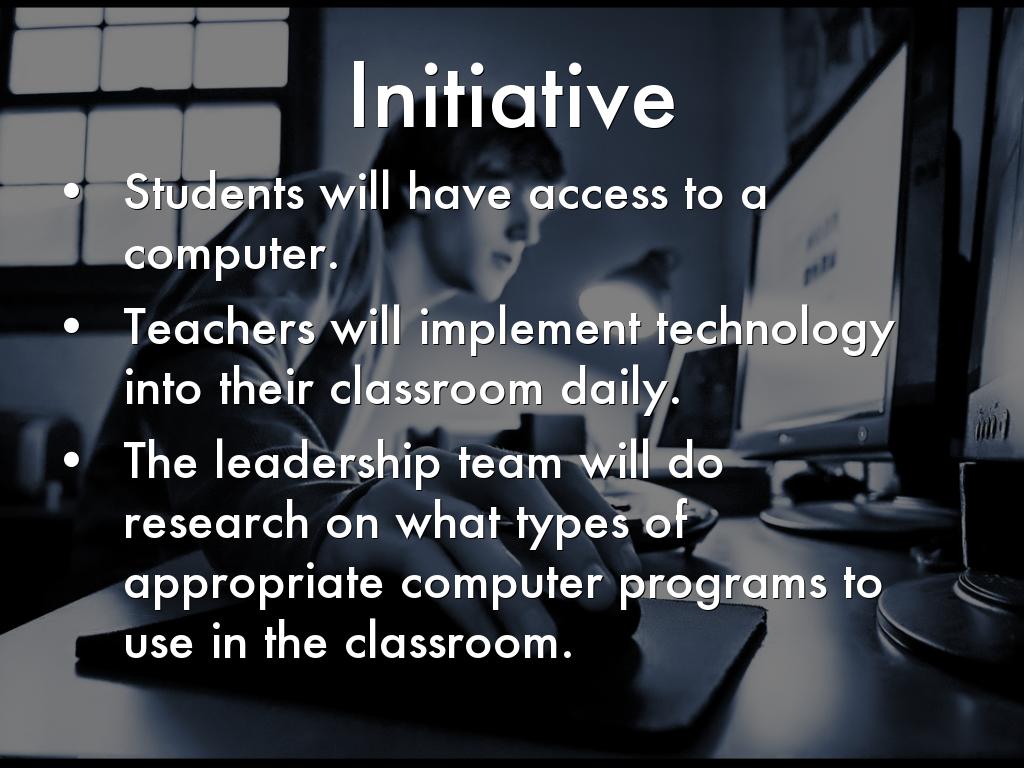 • The leadership team will do research on what types of appropriate computer programs to use in the classroom.