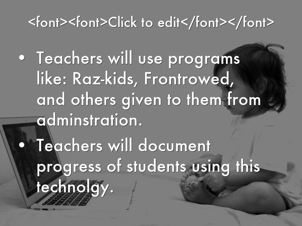 • Teachers will use programs like: Raz-kids, Frontrowed, and others given to them from adminstration.