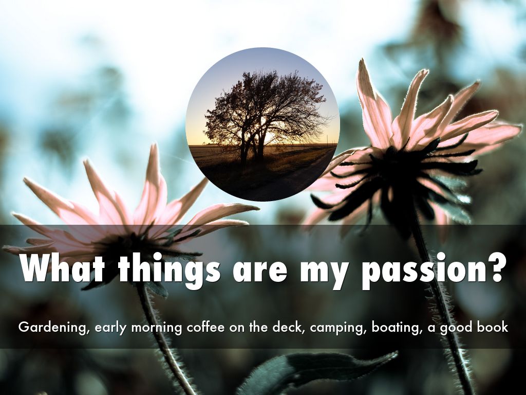 Gardening, early morning coffee on the deck, camping, boating, a good book