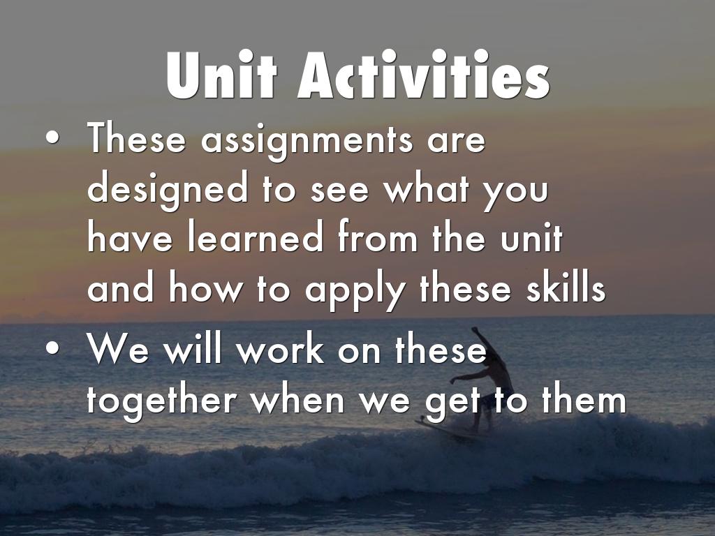 These assignments are designed to see what you have learned from the unit and how to apply these skills