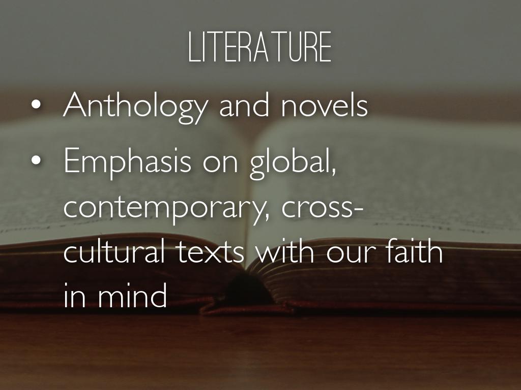 Emphasis on global, contemporary, cross-cultural texts with our faith in mind