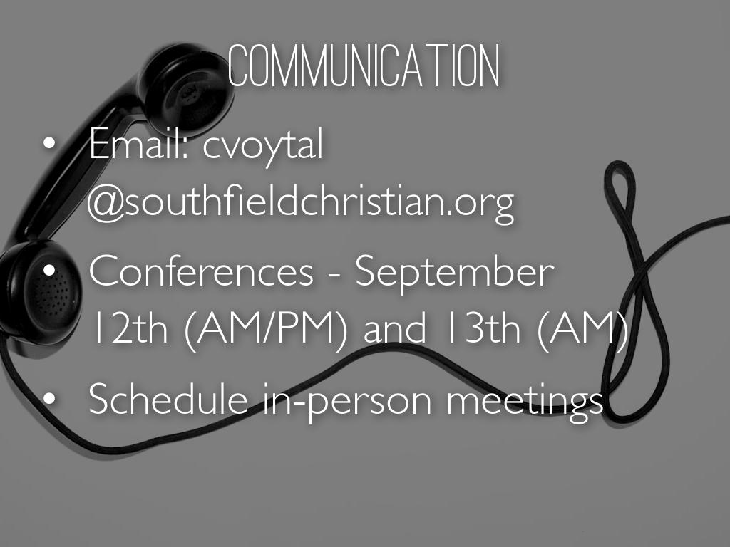 Conferences - September 12th (AM/PM) and 13th (AM)