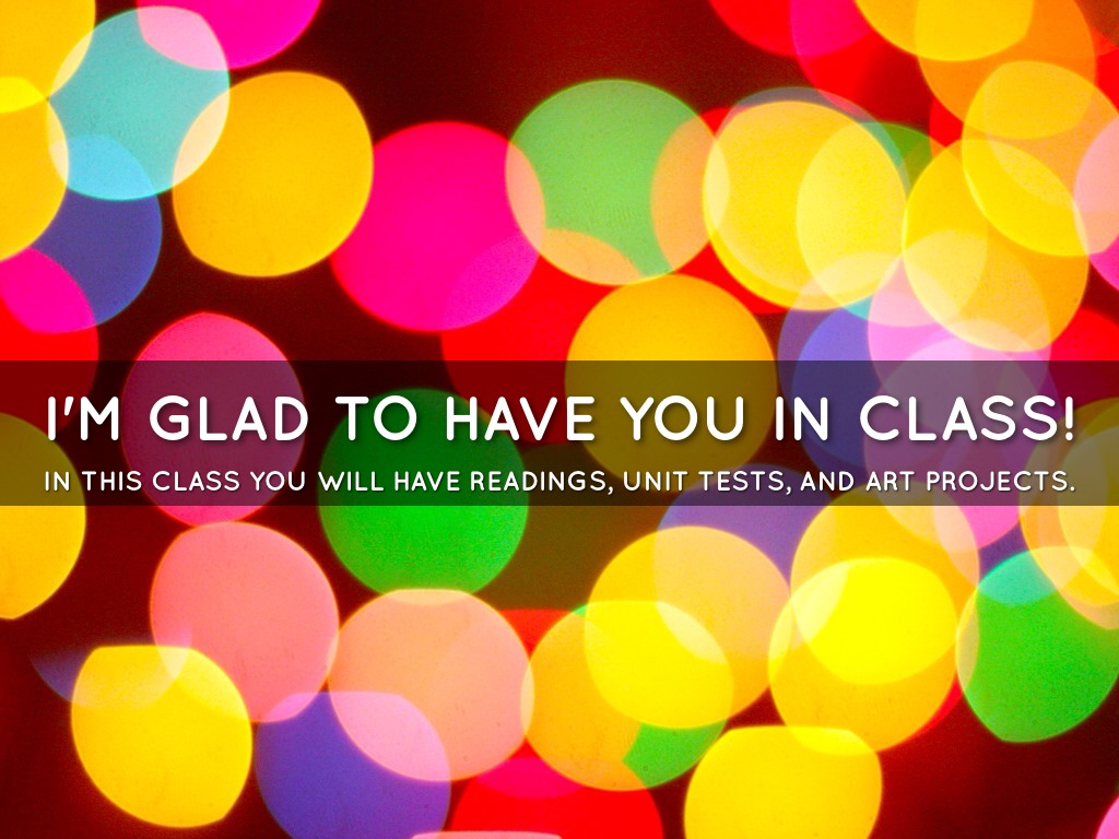IN THIS CLASS YOU WILL HAVE READINGS, UNIT TESTS, AND ART PROJECTS.