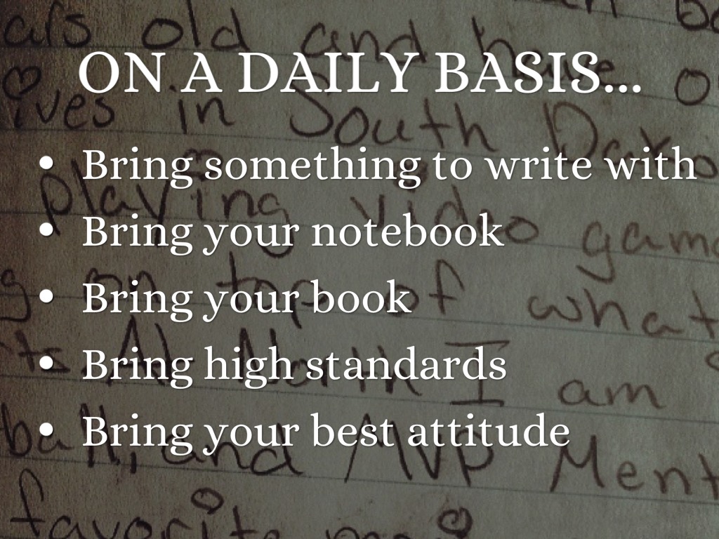 Communication is HUGE. My goal is not to stand at the front of the room and talk at you. Instead, we will spend a lot of time writing about and discussing our ideas and questions about the various content covered in this classroom.
