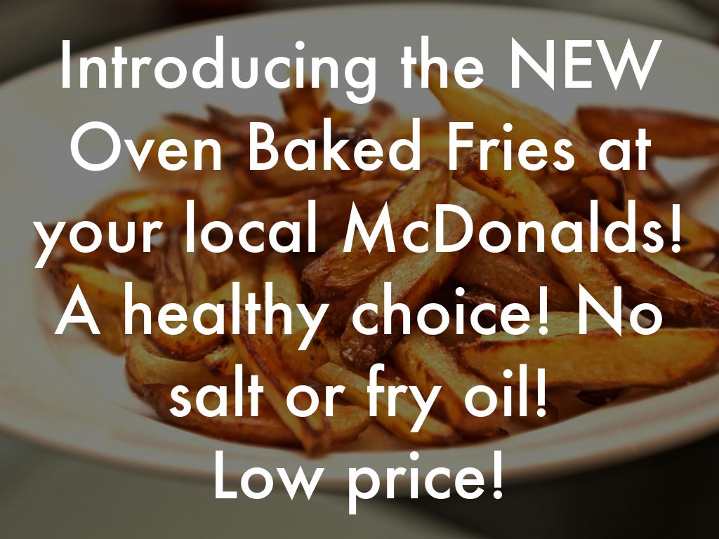 Introducing the NEW Oven Baked Fries at your local McDonalds! A healthy choice! No salt or fry oil!