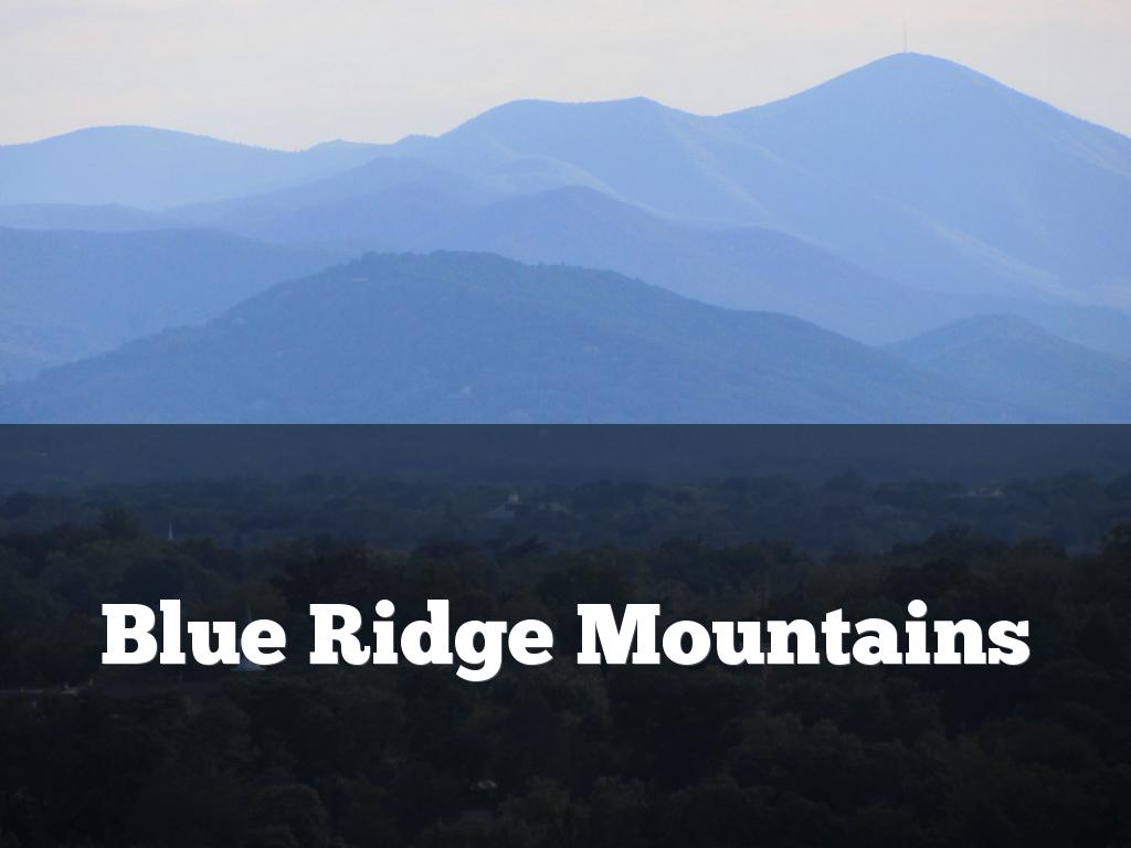 The Blue Ridge Mountains are noted for their bluish color. Trees in the mountain release isoprene into the atmosphere providing a bluish haze.