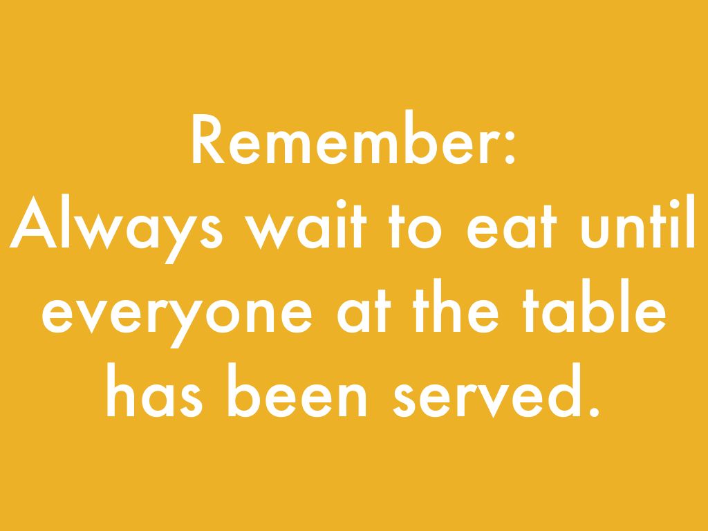 Always wait to eat until everyone at the table has been served.