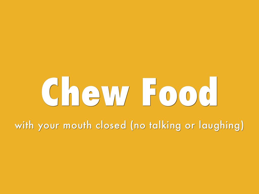 with your mouth closed (no talking or laughing)