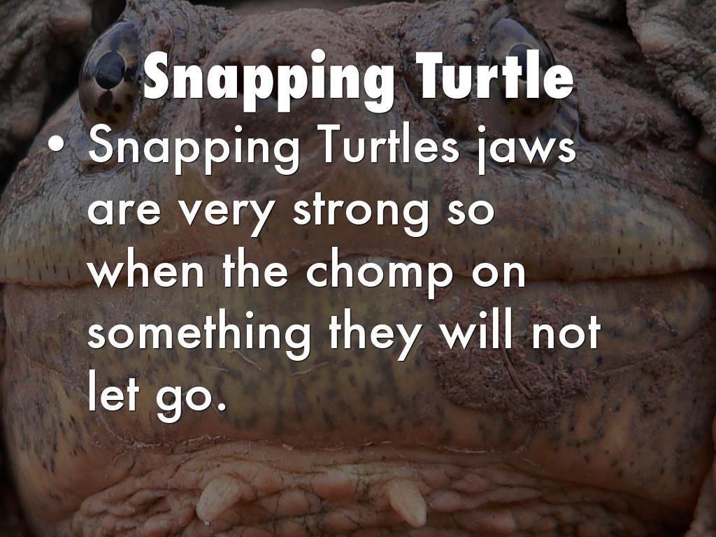 Snapping Turtles jaws are very strong so when the chomp on something they will not let go.