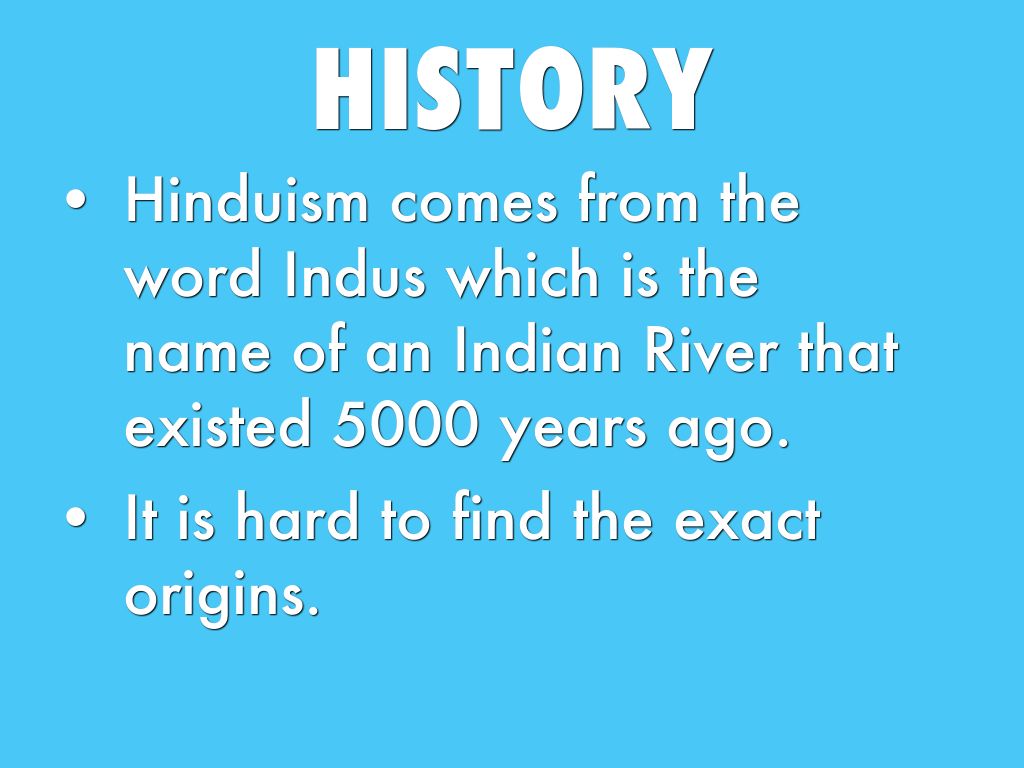 Hinduism comes from the word Indus which is the name of an Indian River that existed 5000 years ago.