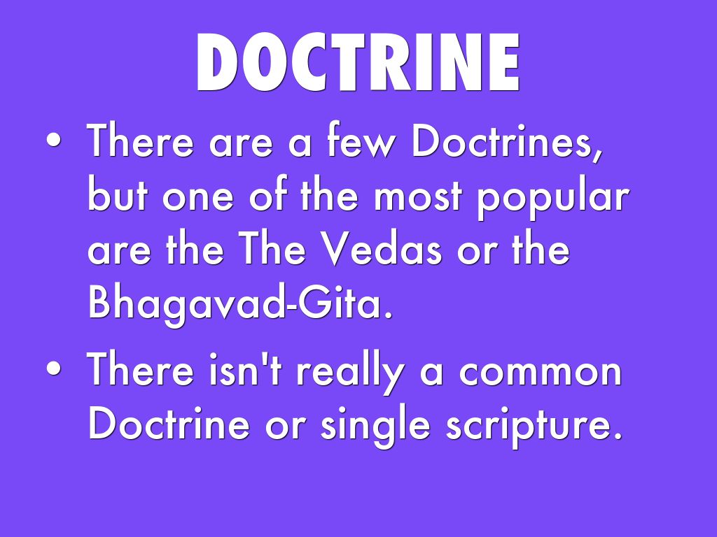 There are a few Doctrines, but one of the most popular are the The Vedas or the Bhagavad-Gita.