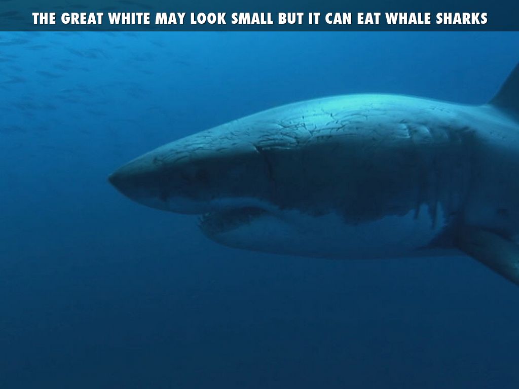 THE GREAT WHITE MAY LOOK SMALL BUT IT CAN EAT WHALE SHARKS