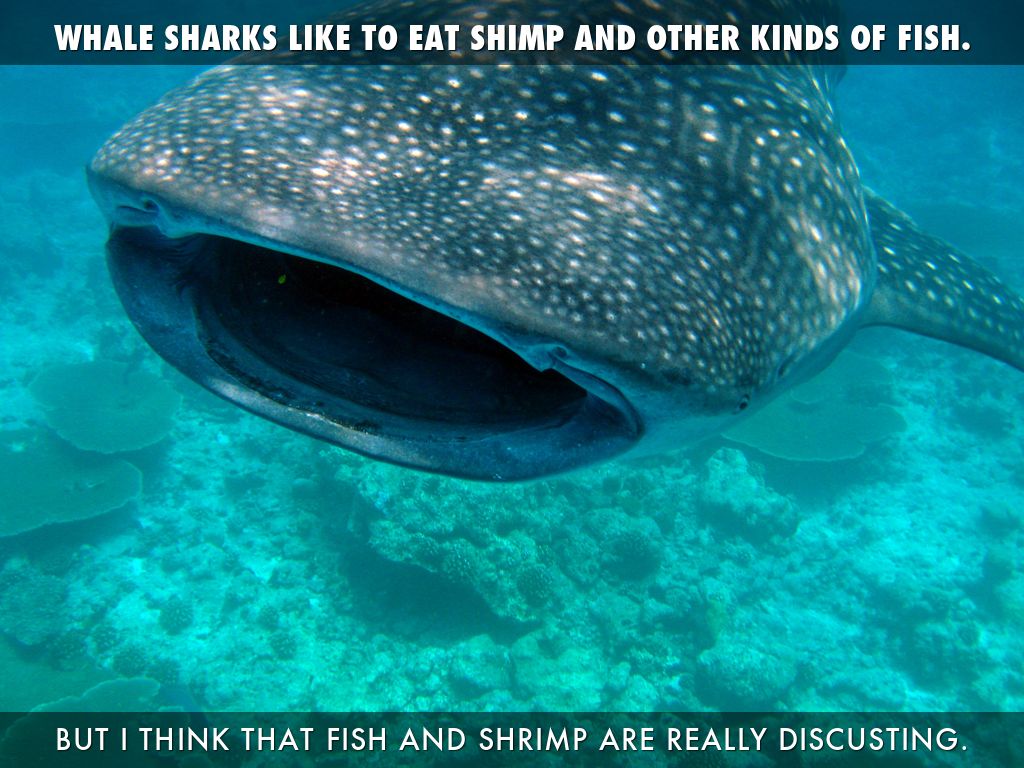 WHALE SHARKS LIKE TO EAT SHIMP AND OTHER KINDS OF FISH.