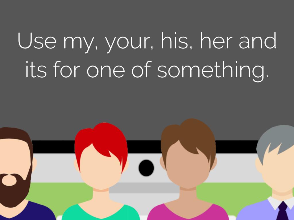 Use my, your, his, her and its for one of something.