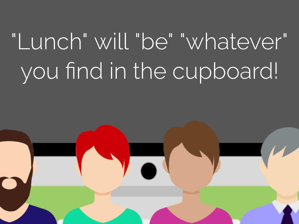 "Lunch" will "be" "whatever" you find in the cupboard!
