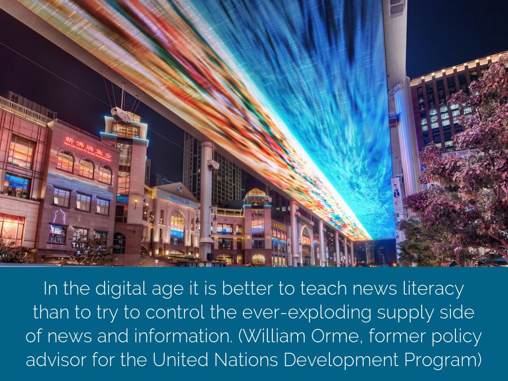 In the digital age it is better to teach news literacy than to try to control the ever-exploding supply side of news and information. (William Orme, former policy advisor for the United Nations Development Program)