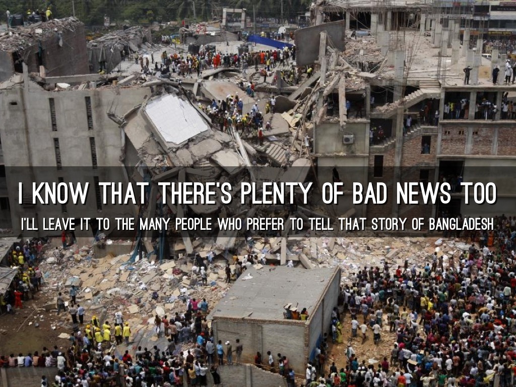 Bangladesh has an image problem. Years of negative stories in the world's media (or none at all) have helped create this. And some of it is justified. But many people have learnt an image of Bangladesh that is far from complete. I myself had a perception before I went there that was largely mistaken. The truth is Bangladesh has many success stories, and I would like to see some of this good news complement the steady flow of bad news.
