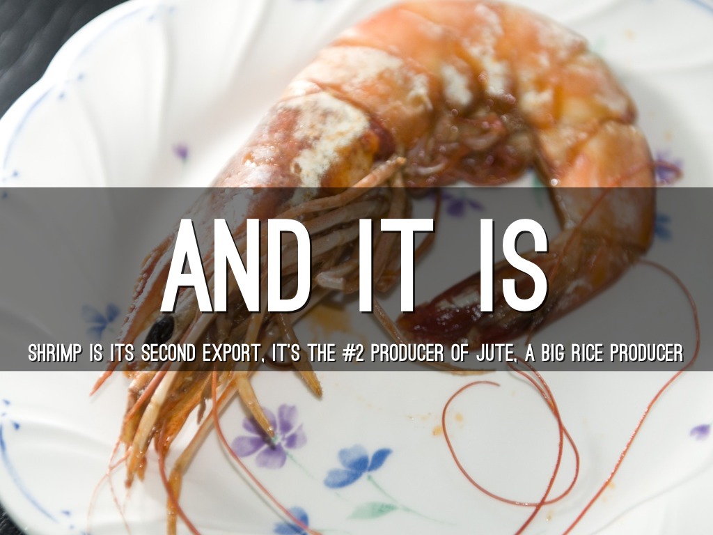 SHRIMP IS ITS SECOND EXPORT, IT'S THE #2 PRODUCER OF JUTE, A BIG RICE PRODUCER