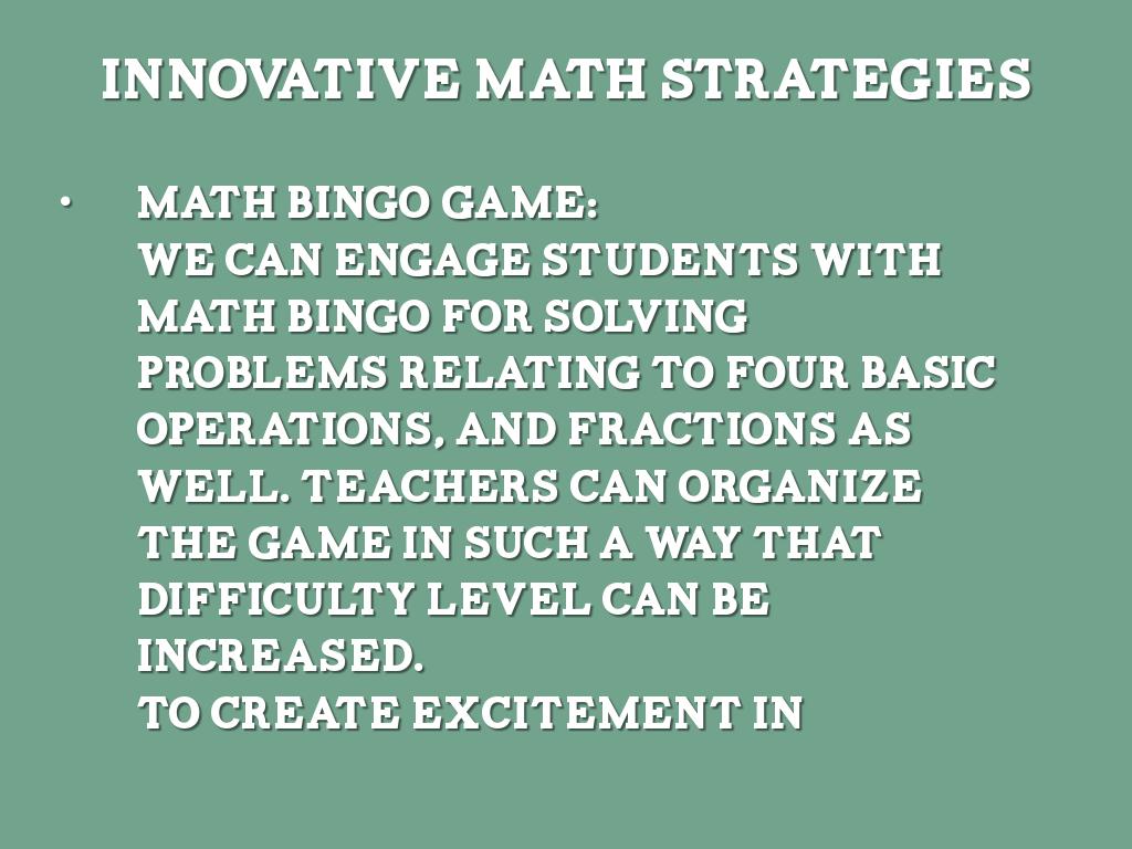 We can engage students with math bingo for solving problems relating to four basic operations, and fractions as well. Teachers can organize the game in such a way that difficulty level can be increased.