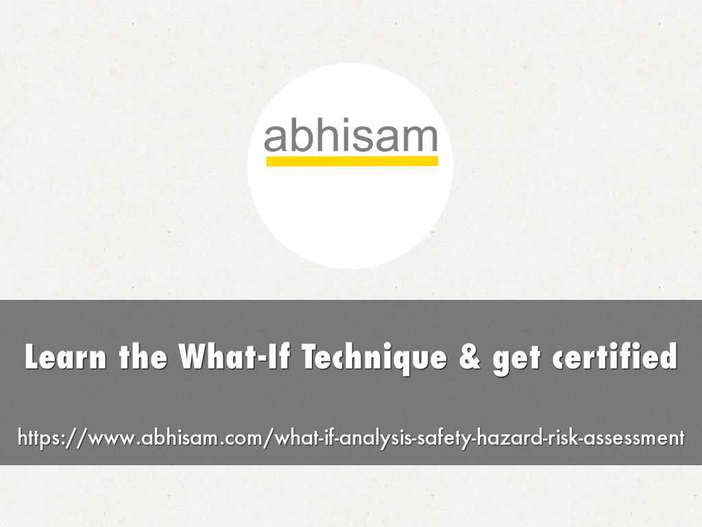 The What-If analysis technique is a fast and easier hazard and risk assessment technique that can be used instead of more popular techniques like HAZOP, in a wide range of situations. To know more please visit https://www.abhisam.com