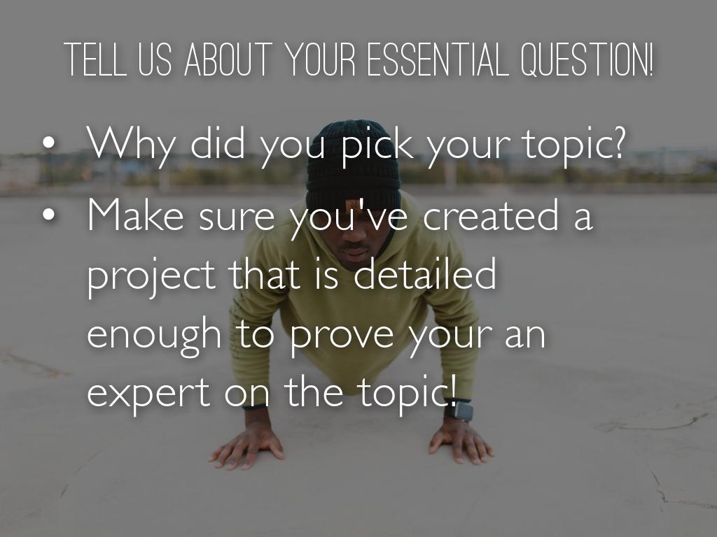 Make sure you've created a project that is detailed enough to prove your an expert on the topic!
