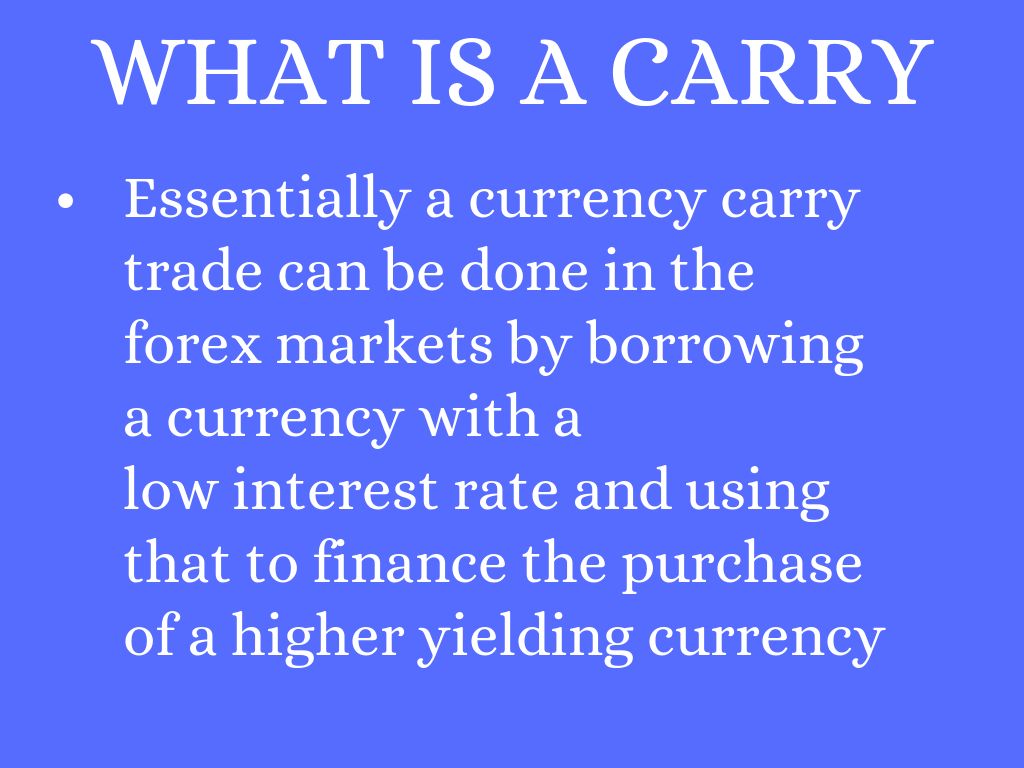 Essentially a currency carry trade can be done in the forex markets by borrowing a currency with a
