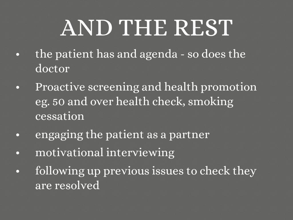 the patient has and agenda - so does the doctor