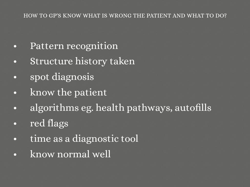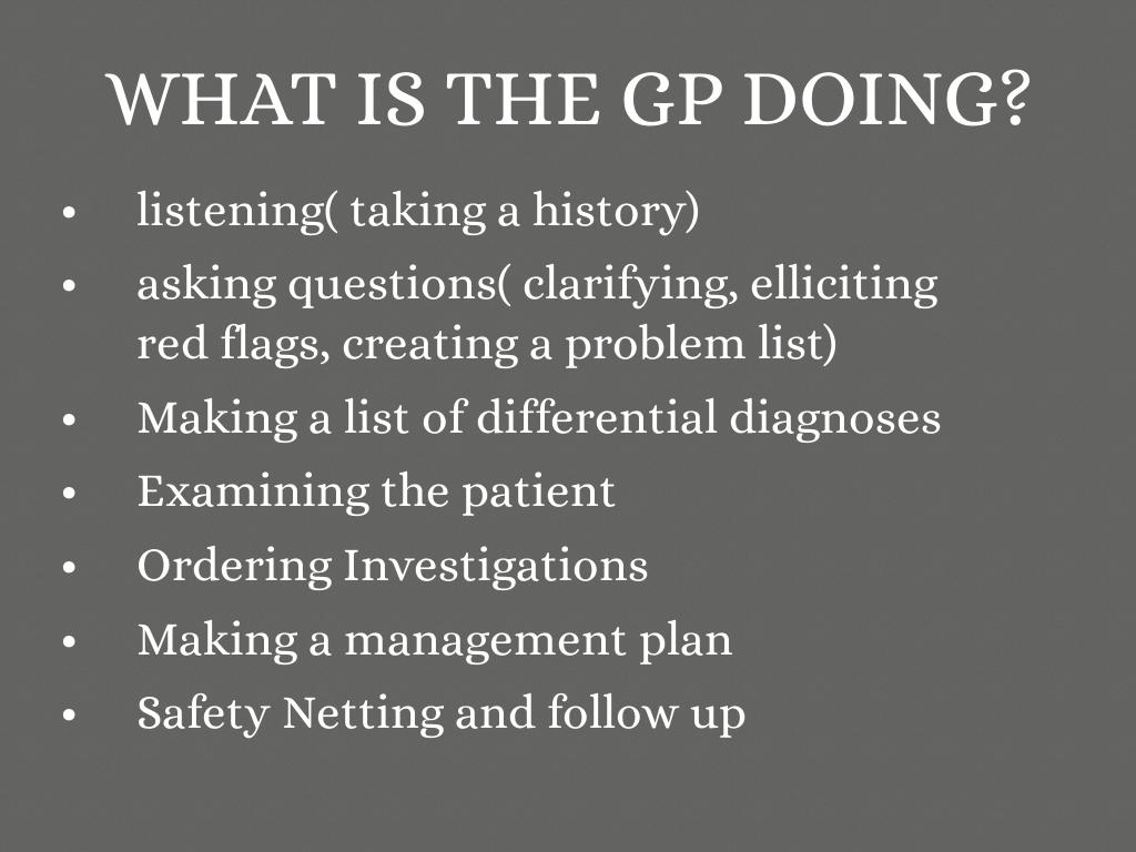 HOW TO GP'S KNOW WHAT IS WRONG THE PATIENT AND WHAT TO DO?